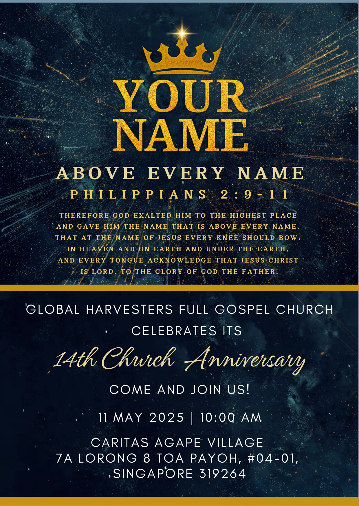 Our 14th Church Anniversary is almost here, and we’re excited to worship together in one voice! We’ve put together a playlist of all the songs we’ll be singing during the anniversary service, and we’d love for everyone to listen, reflect, and get familiar with them ahead of time. Let’s come prepared to lift up the name of Jesus in unity and joy!